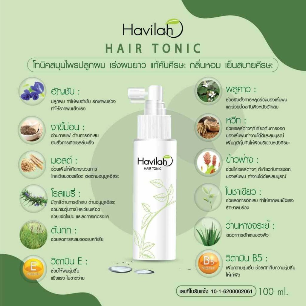 สำหรับเซรั่มปลูกผมของ Havilah เป็นเซรั่มสมุนไพรเป็นสูตรเฉพาะ ที่เน้นการบำรุงผมและกระตุ้นการเกิดผมใหม่ ซึ่งไม่ทำให้บริเวณหนังศีรษะมันได้ง่าย ผมไม่ลีบแบน พกพาง่ายใช้ระหว่างวันได้  มีกลิ่นหอมสดชื่น ไม่เหมือนกลิ่นสมุนไพรทั่วไป แต่เน้นความหอมแบบธรรมชาติ และยังสามารถใช้ทั้งตอนผมแห้งหรือผมเปียกก็ได้อีกด้วย